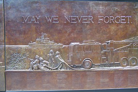 You can go here to see the plaque close up and in greater detail. To read all the fallen firemen's names on the plaque go here and click on the bottom plaque for close-ups.