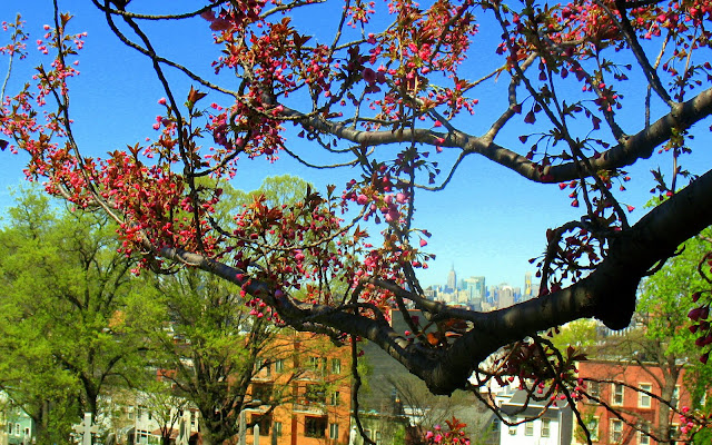 I love all those sculptures in the cemetary-it is nice to see that spring has finally hit the Big Apple and the sun is shining on Miss Liberty!