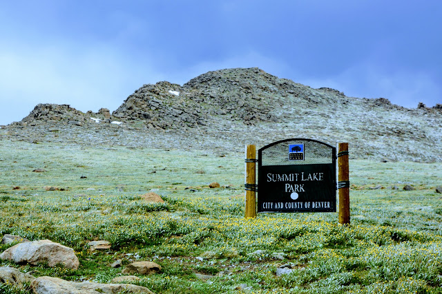 In my last blog post --click here to read- I showed how my husband and I got caught in a snowstorm driving up to the summit of Mt Evans on the first full day of summer! Because of the inclement weather we immediately turned around from the summit and drove back down the mountain from the altitude of 14,170 feet to 12,840 feet, and turned off into Summit Lake Park.